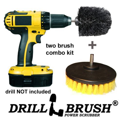 Nylon cordless drill powered cleaning and scrubbing brush. The Drill brush Power Spinning Scrubber Combo Kit works great on: Tile, carpet, tires, wheels, and bathroom. Durable nylon bristles. Medium stiffness for general purpose scrubbing. Drill is for illustration only, drill NOT included.